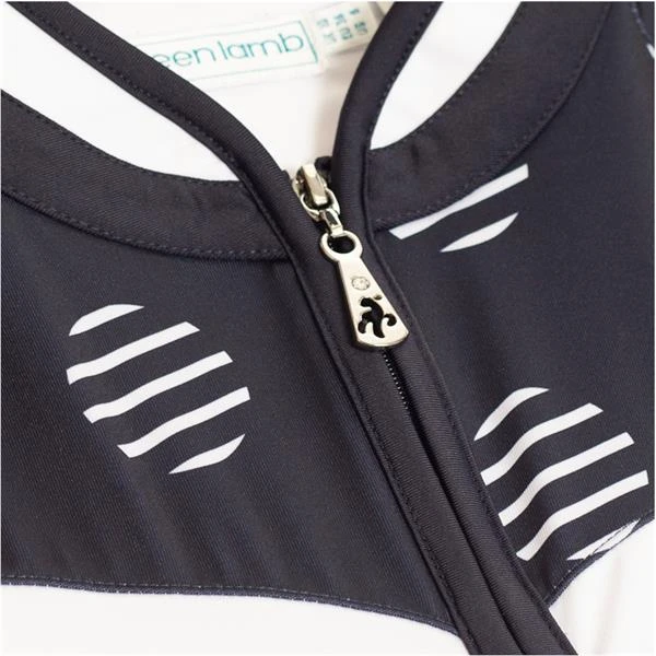 - Front half zip opening with Green Lamb Swarovski crystal zip pull