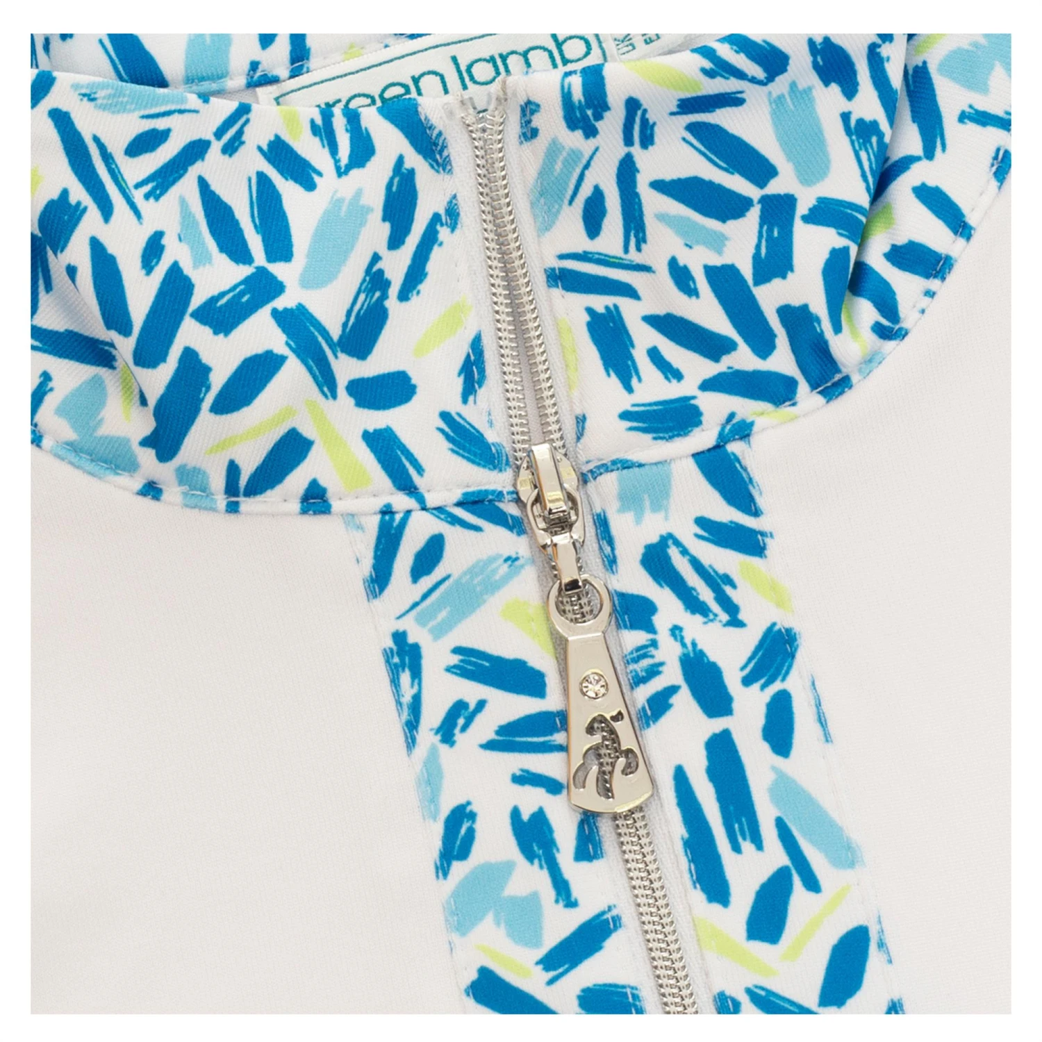 Inspired by a classic lady’s shirt, the Green Lamb Ladies Kaz Long Sleeve Golf Top is sporty yet stylish, this long sleeve golf top elevates your game whatever the weather. Made from a striking mix of solid and printed panelling, it features a silver zip neckline, contoured panels at the sides and sleeves for a sleek silhouette, and moisture-wicking fabric for ultimate comfort. The lightweight fabric is breathable and moisture-wicking, ensuring you stay fresh in demanding conditions.