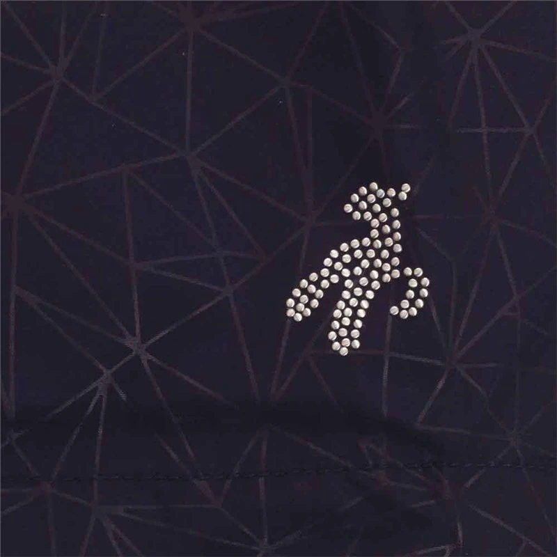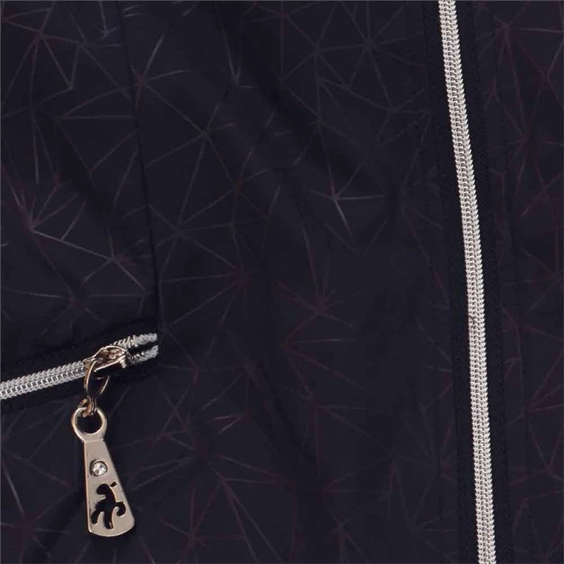 - Two-way exposed silver full zip with Green Lamb Swarovski crystal zip pull