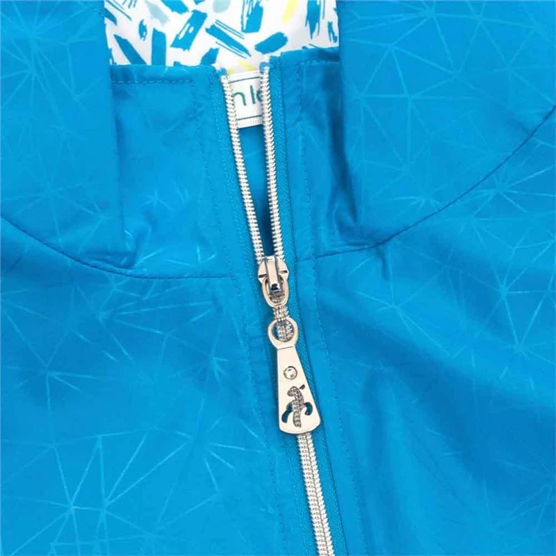 - Exposed 2-way silver full zip with Green Lamb Swarovski crystal zip pull
