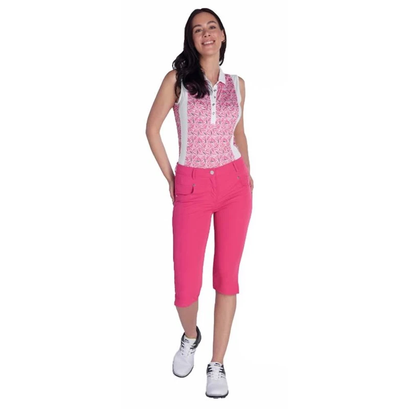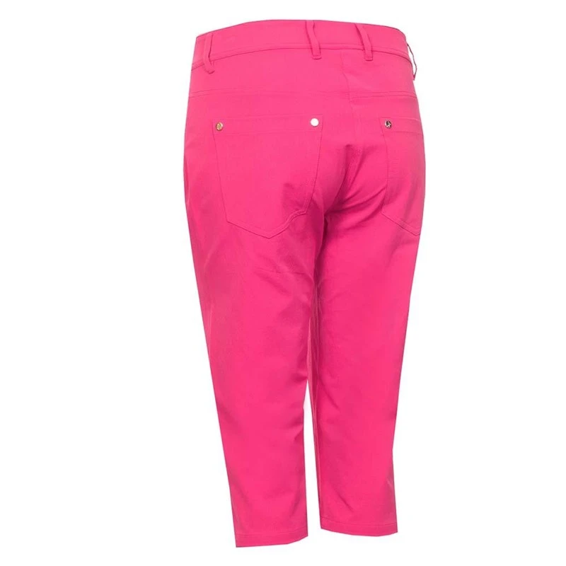 Beautifully crafted pedal pushers featuring silver metal logo rivets front and back, at pockets and double belt loops. The front and back seaming creates a tailored shape for a great fit. Soft stretchy fabric allows for enhanced freedom of movement.
