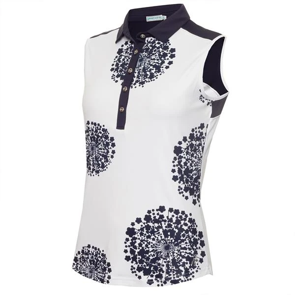 Green Lamb Ladies Enid Print Sleeveless Polo Shirt Dandelion SG21866