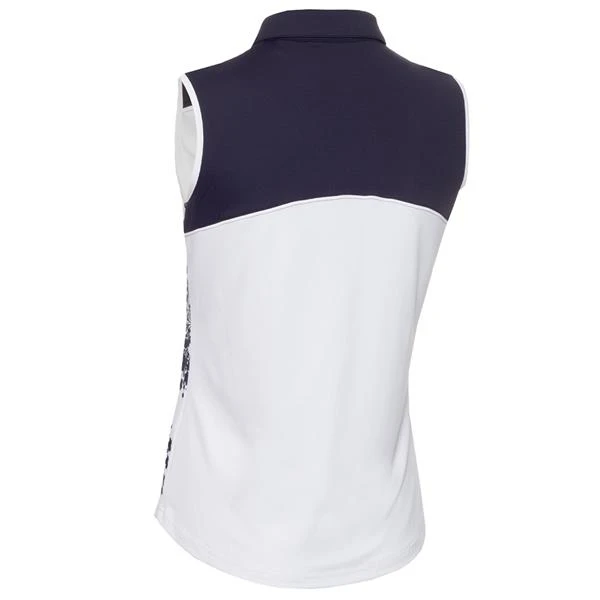The stunning printed front of the Enid Sleeveless Polo is a knockout both on and off the course. Contrasting trims throughout and curved back yoke piping make for a dynamic looking polo. The quick dry performance jersey fabrication boasts UV protection (50+), and recycled polyester is the smart choice for you and the environment.