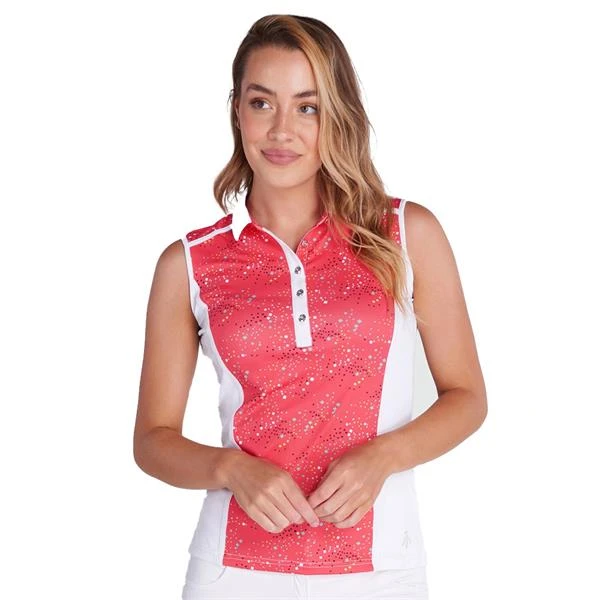 The Erica Sleeveless Polo cuts a sleek silhouette thanks to the contrasting shaped side panels that make for a flattering shape. High performing and comfortable this polo will allow you to play your best game and keep you feeling fresh throughout your round. Incorporating recycled polyester for a better choice for the environment.Â