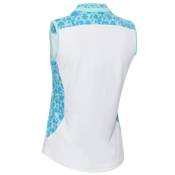 A beautifully designed sleeveless polo with a sporty edge thanks to the zip neck and mandarin style collar. Curved printed fabric panels at the shoulders and sides create a flattering silhouette. Made from a high performing fabric with plenty of stretch to ensure a comfortable and flattering fit.