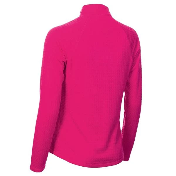 Supremely soft solid colour half zip top that will provide a cosy layer of warmth this season on the course. An attractive all-over waffle texture makes for a very appealing garment. Raglan sleeve design creates a flattering shape for everyone. The high performing fabric is lightweight and breathable to keep you dry and comfortable throughout your round.