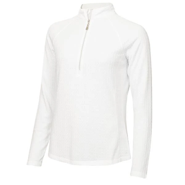 Green Lamb Ladies Gloria Waffle Zip Neck Top White