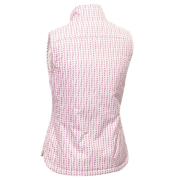 Add a stylish yet practical warming layer with the Kathleen padded gilet showcasing a vibrant all-over print adding brightness to your day. Lightly padded it features attractive quilted panels at the top with a water-resistant finish to keep you playing in comfort. Front and back style lines make for a flattering silhouette.