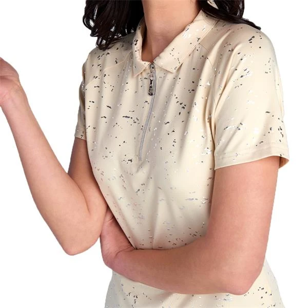 Introduce a little touch of sparkle to your style with Green Lambs Katlynne Polo highlighted with scattered silver foil print for a truly unique look. Sleek zip neck and raglan style sleeves make for a flattering shape and exceptional comfort. Made from recycled polyester from our Planet Luxury Fabric series so you are contributing a greener environment.