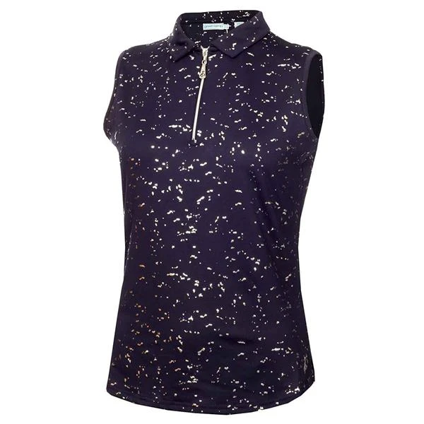 Introduce a little touch of sparkle to your style with Green Lambs Katrianna Sleeveless Polo highlighted with scattered silver foil print for a truly unique look. Sleek zip neck and curved hem make for a flattering shape and stretch enhanced fabric for exceptional comfort. Made from recycled polyester from our Planet Luxury Fabric series so you are contributing a greener environment.