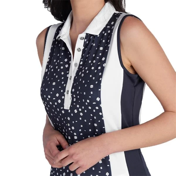 Green Lamb Ladies Kay Sleeveless Printed Panel Polo Shirt Nightsky
