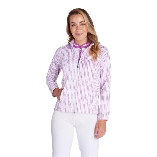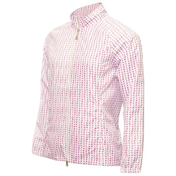 Bold and vibrant print paired with great versatility will ensure the Kayley Printed Windbreaker becomes an essential part of our golfing wardrobe this season. Lightweight and packable it easily stows away in your golf bag ready to spring into action should a rain shower make an appearance. Elasticated waist section at the back creates a more tailored shape