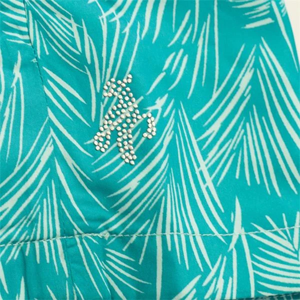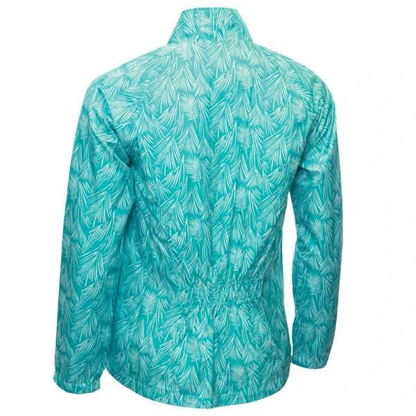 Bold and vibrant print paired with great versatility will ensure the Kayley Printed Windbreaker becomes an essential part of our golfing wardrobe this season. Lightweight and packable it easily stows away in your golf bag ready to spring into action should a rain shower make an appearance. Elasticated waist section at the back creates a more tailored shape