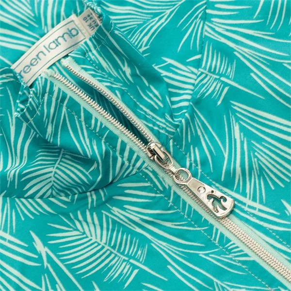 - Exposed 2-way silver full zip with Green Lamb Swarovski crystal zip pull