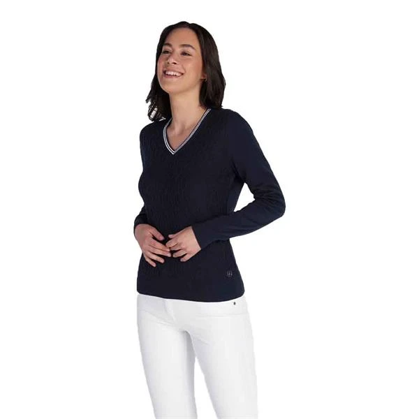 Green Lamb Ladies Kayley Ripple V-Neck Sweater Navy