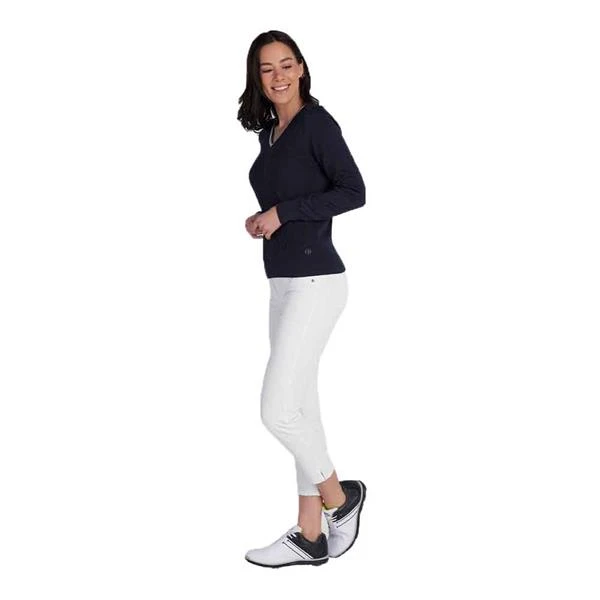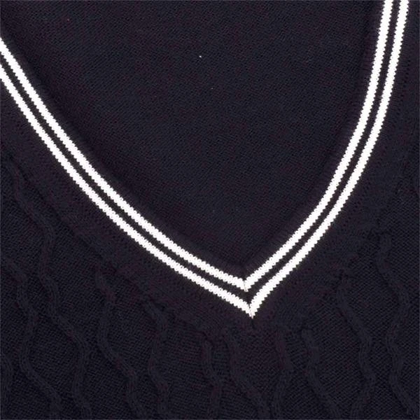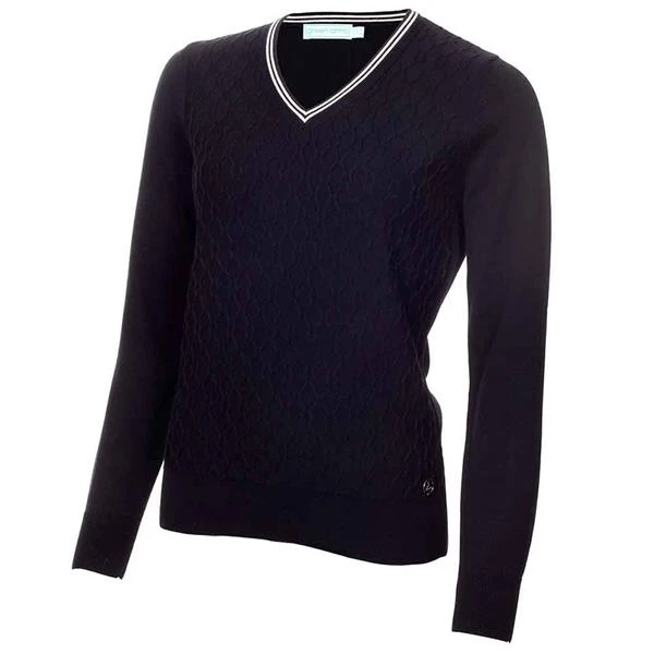 For a chic yet practical addition to your golfing wardrobe this season Green Lamb’s Kayley V-neck sweater fits the bill perfectly with its attractive linear knit design and flattering neckline. The rib knit cuffs and hem ensures a snug and comfortable fit. 100% cotton for a sumptuous feel. Â