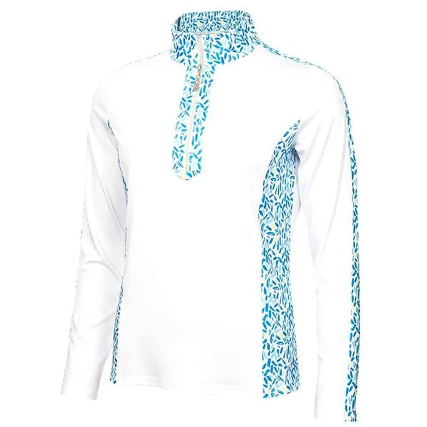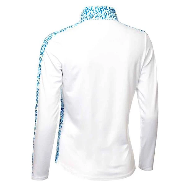 Green Lamb Ladies Kaz Long Sleeve Raglan Print Zip Neck Top White Zing