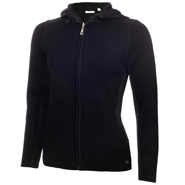 The Kimberely Hybrid Hoodie from Green Lamb combines Milano Knit fabric panels with fleece backed jersey ones for maximum impact in this fashion forward cover-up that will work in any setting. Understated design at its best this jacket will cut a dash on and off the course and provides great protection from the wind. The attached hood sports a toggle and drawcord adjustment.