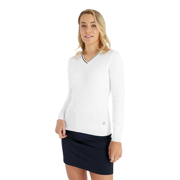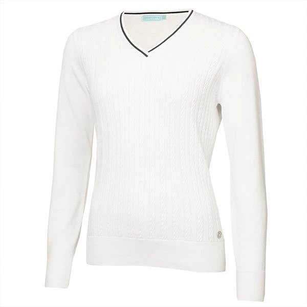 Green Lamb Ladies Madison Cable V-Neck Sweater White