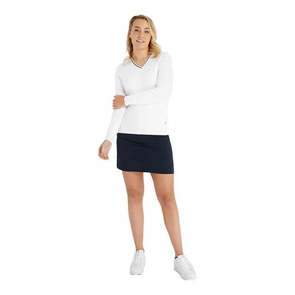 For a chic yet practical addition?to your golfing wardrobe this season Green Lamb’s Madison V-neck?sweater fits the bill perfectly with its attractive cable knit design and flattering crossover neckline. The rib knit cuffs and hem ensures a snug and comfortable fit.?100% cotton for a sumptuous?feel.