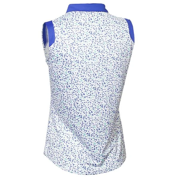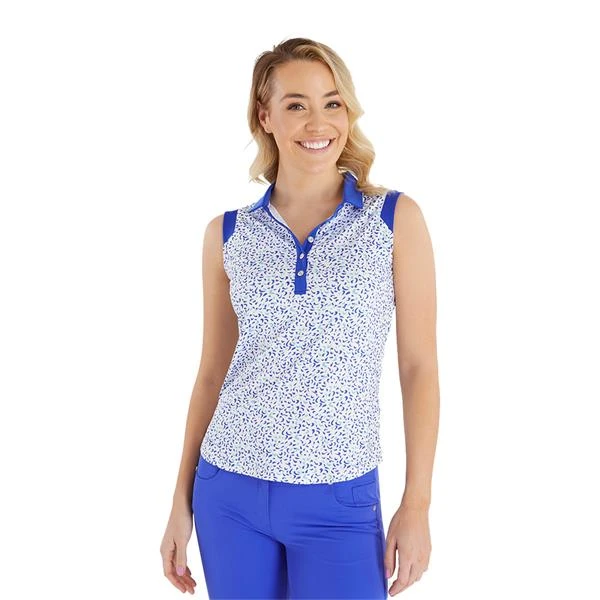 Green Lamb Ladies Marie Printed Sleeveless Polo Shirt Terrazo Print