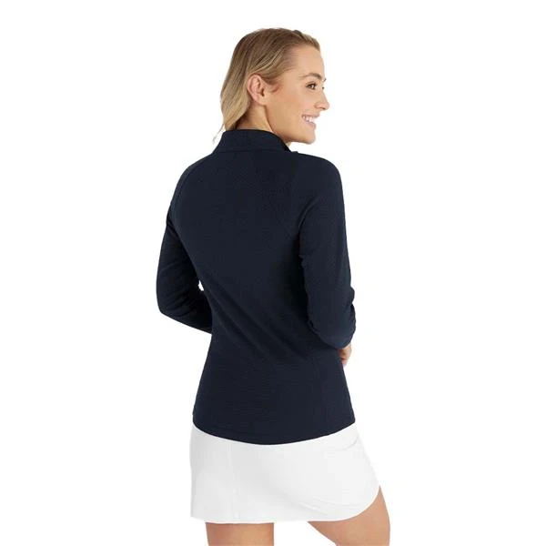 Versatile solid colour half zip top that will provide a comforting layer whenever you need it. Attractive waffle knit texture in a soft feel fabric with plenty of stretch. Raglan sleeve design creates a flattering shape for everyone. The high performing fabric is lightweight and breathable to keep you dry and comfortable throughout your round
