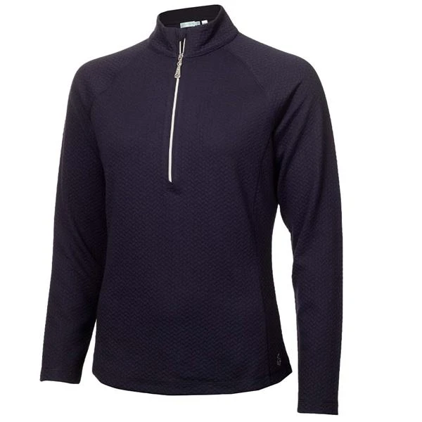 Green Lamb Ladies Molly Textured Zip Neck Top Navy