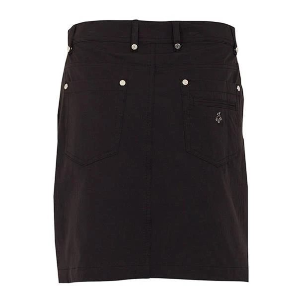 Sophisticated skort featuring shiny metal rivets front and back, at pockets and belt loops. The A-line shape is easy-to-wear and flattering for all while providing maximum comfort thanks to the lightweight and stretchy hidden shorts.
